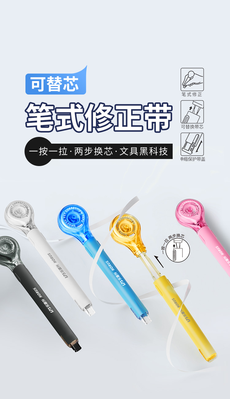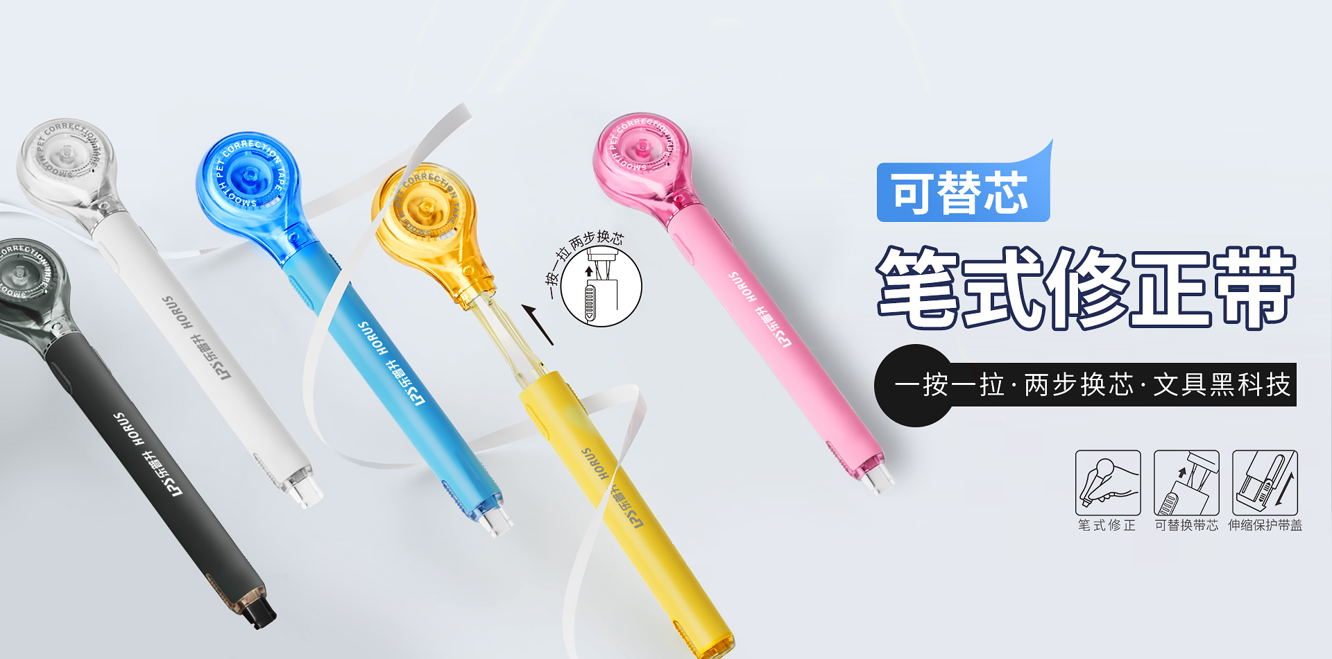 涵蓋修正帶系列、書寫工具系列、益智創意系列、紙品系列等多品類